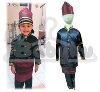 Pakaian Adat Batak Simalungun Bahan: Saten Aksesoris: Kepala + Songket Ukuran: 6-8th Lebar dada: 40cm Panjang baju: 54cm Lebar pinggang: 23cm Panjang celana: 70cm Harga Sewa: Rp. 140.000/- Harga Beli:    Rp.  250.000/-